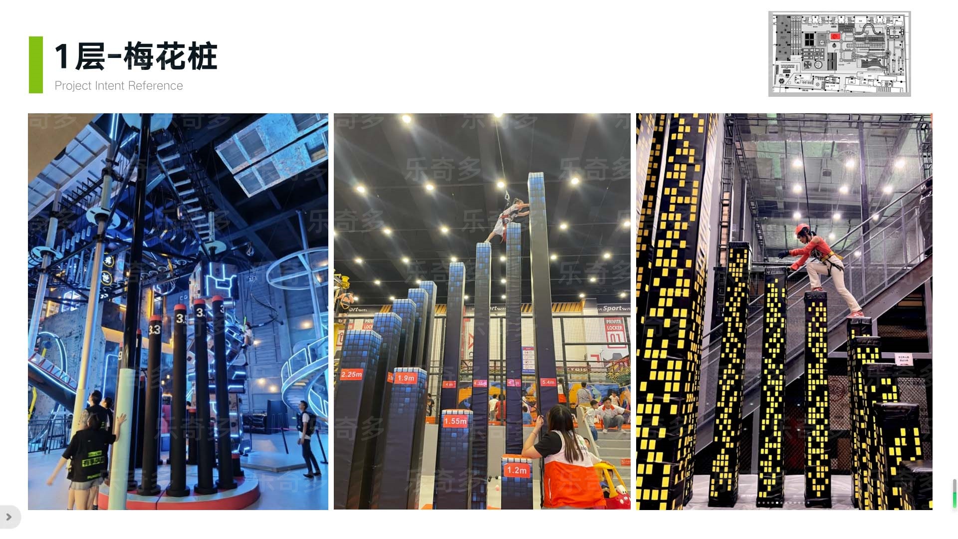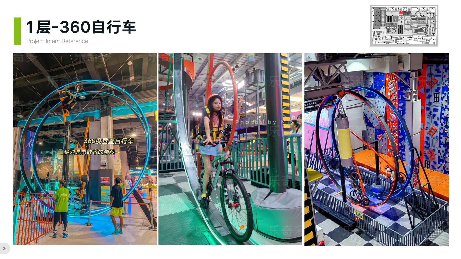 項目玩法:造型打卡點、繞柱螺旋樓梯、牽引球、高空項目樓梯、二三層跳樓機、不銹鋼滑梯、魔方攀巖、趣味攀巖、旱雪滑梯快速通道、旱雪滑梯、360自行車、桁架闖關(guān)、激光密室、海綿池對抗、鏡子迷宮等。